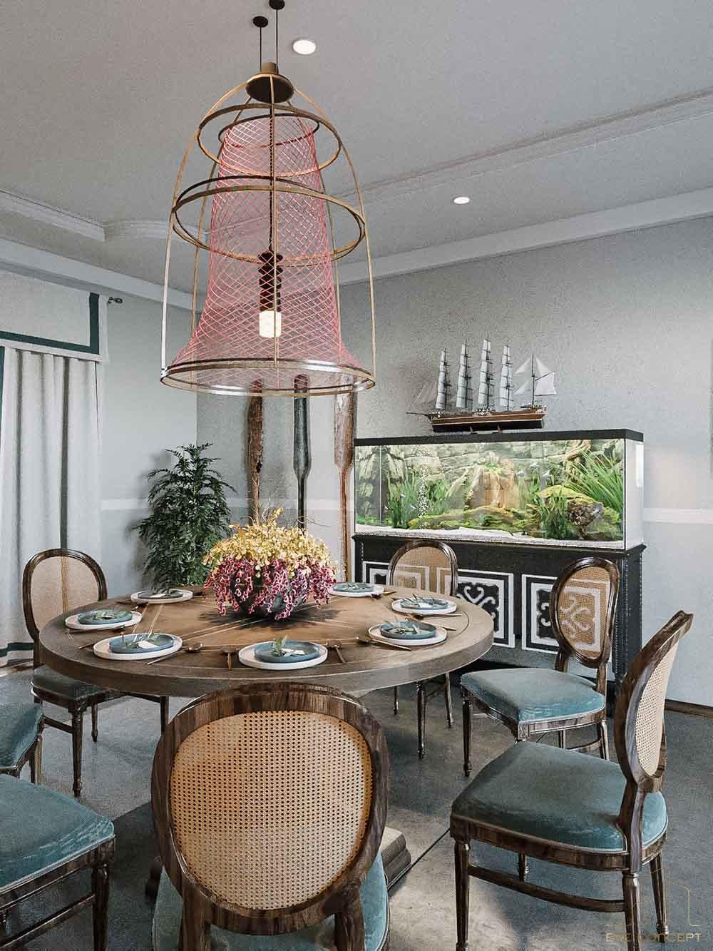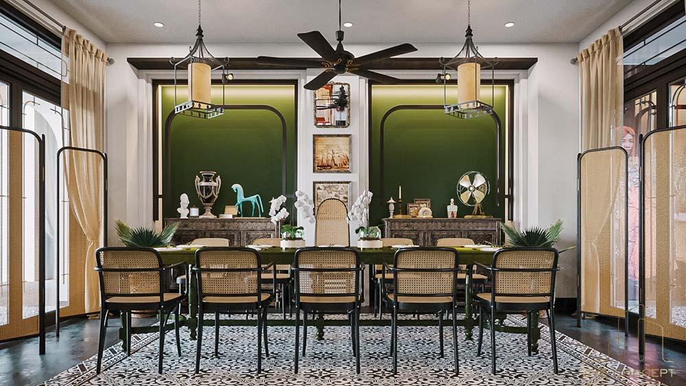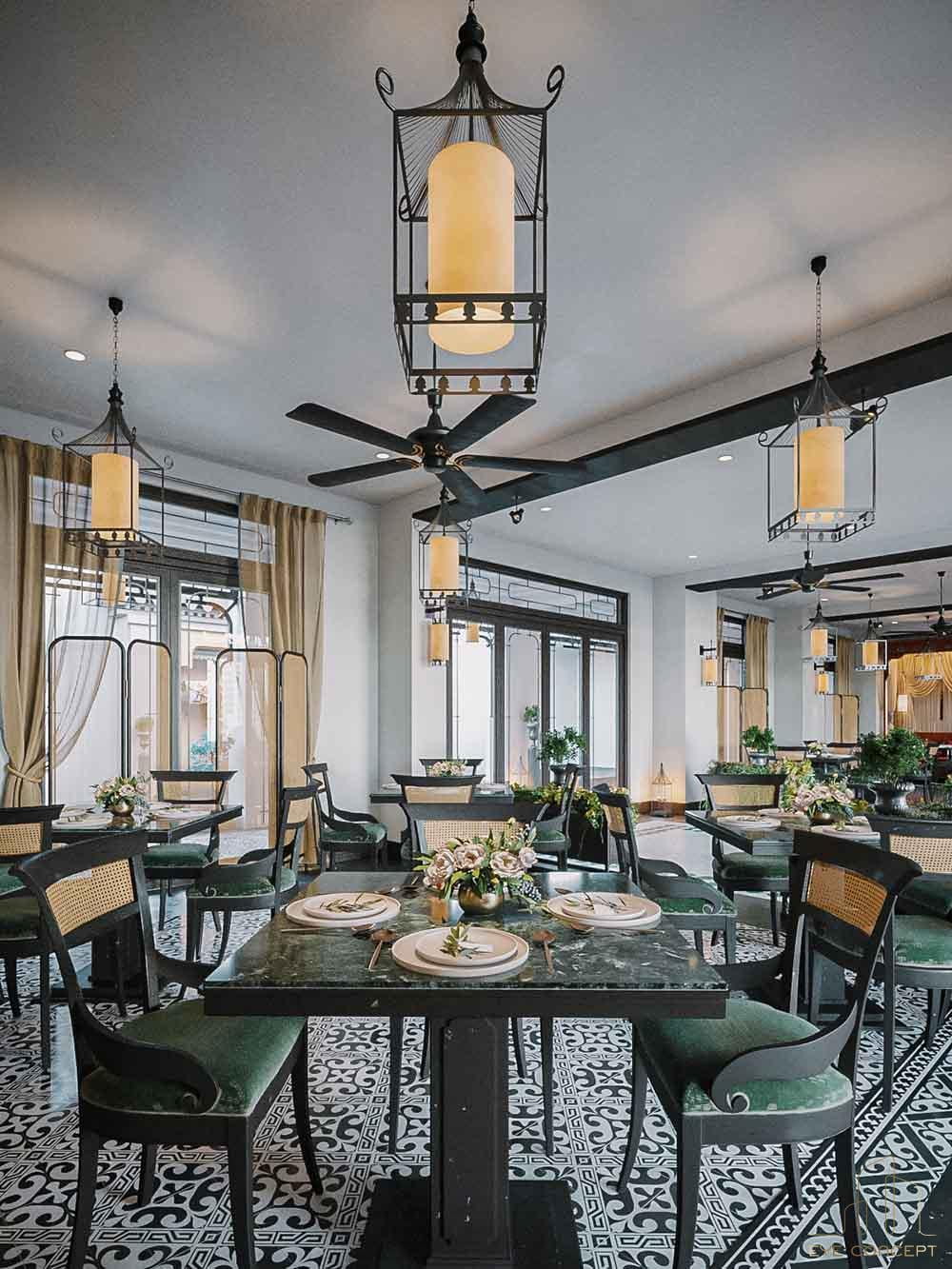 Nhà hàng Dinh Restaurant được lấy cảm hứng thiết kế theo phong cách Đông Dương (Indochine). Là sự kết hợp hoàn hảo giữa hai nền văn hóa phương Đông và phương Tây, ở Dinh người ta sẽ thấy cái hoài niệm của người Hà Nội xưa xen lẫn với kiến trúc Pháp. Sự kết hợp giữa nét đẹp hiện đại, và phong cách nội thất hiện đại châu Âu cách tân của Pháp được nhiệt đới hóa bởi bản sắc của Việt Nam mang tính thẩm mỹ vô cùng cao. Mỗi phòng ăn trong Nhà hàng Dinh đều được thiết kế concept nội thất khác nhau, để mỗi lần thực khách ghé chân nhà hàng đều sẽ có những trải nghiệm tuyệt đối mới mẻ.