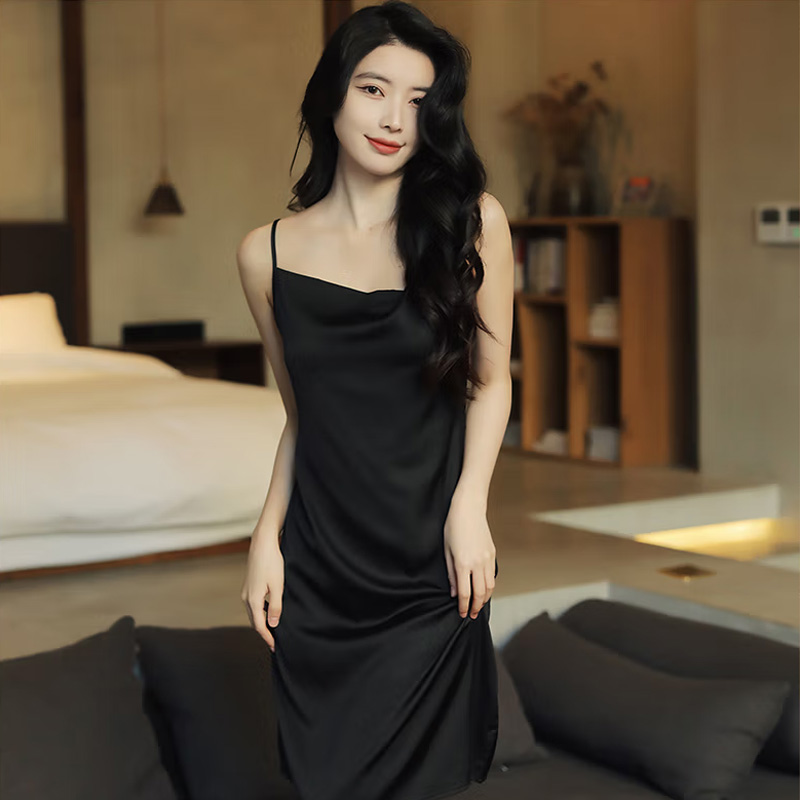 - Váy ngủ lụa đen hai dây: Đơn giản nhưng vô cùng quyến rũ.